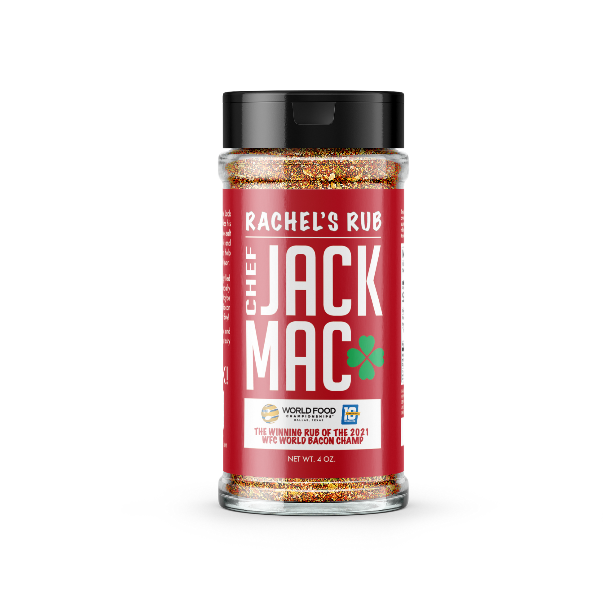 Enjoy this amazing spice recipe that Jack Mac named for the person who makes his Irish eyes smile. Rachel's Rub combines salt and brown sugar with savory garlic and chili plus earthy smoked paprika to help your favorite meats reveal their full flavor. Jack Mac invented this rub for all grilled meats but he will tell you that it is especially good with pork cuts and bacon. Maybe that's why he is 2021's WFC World Bacon Champ! Not too shabby for a Jersey Boy! Use Rachel's Rub liberally before and during your cook.
